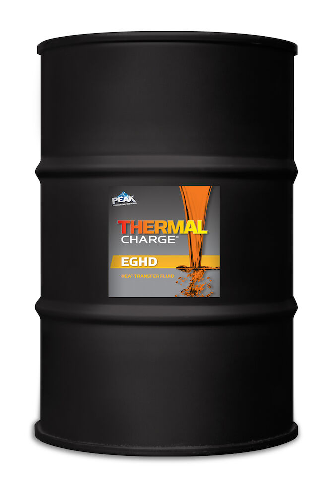 Thermal Charge® EGHD heat transfer fluid is a heavy duty formulation of ethylene glycol and a specially formulated package of industrial corrosion inhibitors for use in closed systems with copper and other metal components, and for systems that require reliability in higher temperature operations. The fluid is dyed fluorescent orange to aid in leak detection. Solutions in water provide freeze protection to below -50°C (-60°F) and burst protection to below -73°C (-100°F). This product is not intended for use in vehicle or stationary engine applications.
