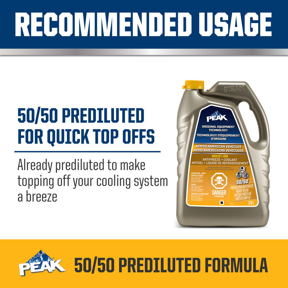 PEAK ORIGINAL EQUIPMENT TECHNOLOGY™ Antifreeze + Coolant 50/50 Prediluted for North American Vehicles - GOLD