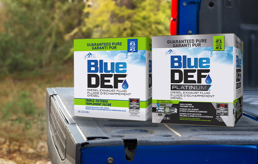 Le fluide d’échappement diesel BlueDEF est la marque la plus importante en matière de DEF; elle est appuyée par une garantie de pureté pour que le fluide d’échappement diesel entrant dans votre camion soit aussi pur que le jour où il a été fabriqué.