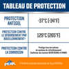 ANTIGEL + LIQUIDE DE REFROIDISSEMENT PEAK ORIGINAL EQUIPMENT TECHNOLOGY pour les véhicules NORDS–AMÉRICAINS – ORANGE est exempt de silicate, de borate, de phosphate, de nitrite et d’amines, et est entièrement compatible avec d’autres liquides de refroidissement à durée de vie prolongée. Il répond aux exigences des normes ASTM D3306 et D4985 en matière de rendement Lorsqu’il est installé dans le cadre d’un rinçage complet et d’un remplissage de liquide de refroidissement, PEAK garantit que ce liquide de refroidissement fournira une protection de durée de vie allant jusqu’à 400 000 milles ou 15 ans. Utiliser ANTIGEL + LIQUIDE DE REFROIDISSEMENT PRÉ-DILUÉ 50/50 PEAK ORIGINAL EQUIPMENT TECHNOLOGY pour effectuer un rinçage/remplissage complet.