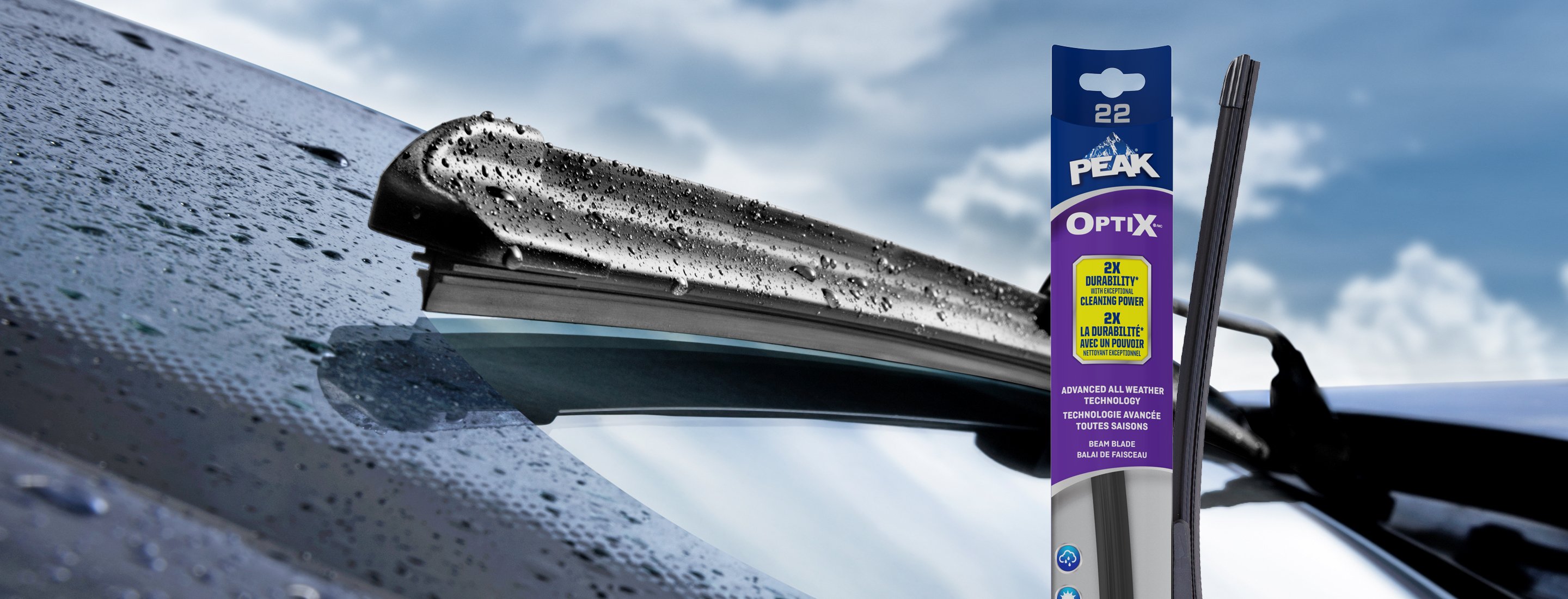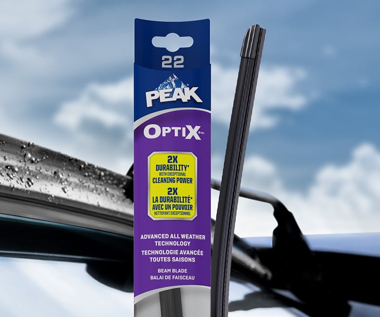 Les balais d’essuie-glace PEAK® Optix® Beam sont des balais plats de qualité supérieure conçus pour épouser la courbe de votre pare-brise afin de fournir un essuyage propre par tous les temps. Les balais d’essuie-glace PEAK® Optix® Beam sont également conçus avec une technologie sans cadre empêchant l’accumulation de neige et de glace sur les balais d’essuie-glace. Contrairement aux balais d’essuie-glace à cadre traditionnel, ce balai plat exerce une pression continue sur toute sa surface.