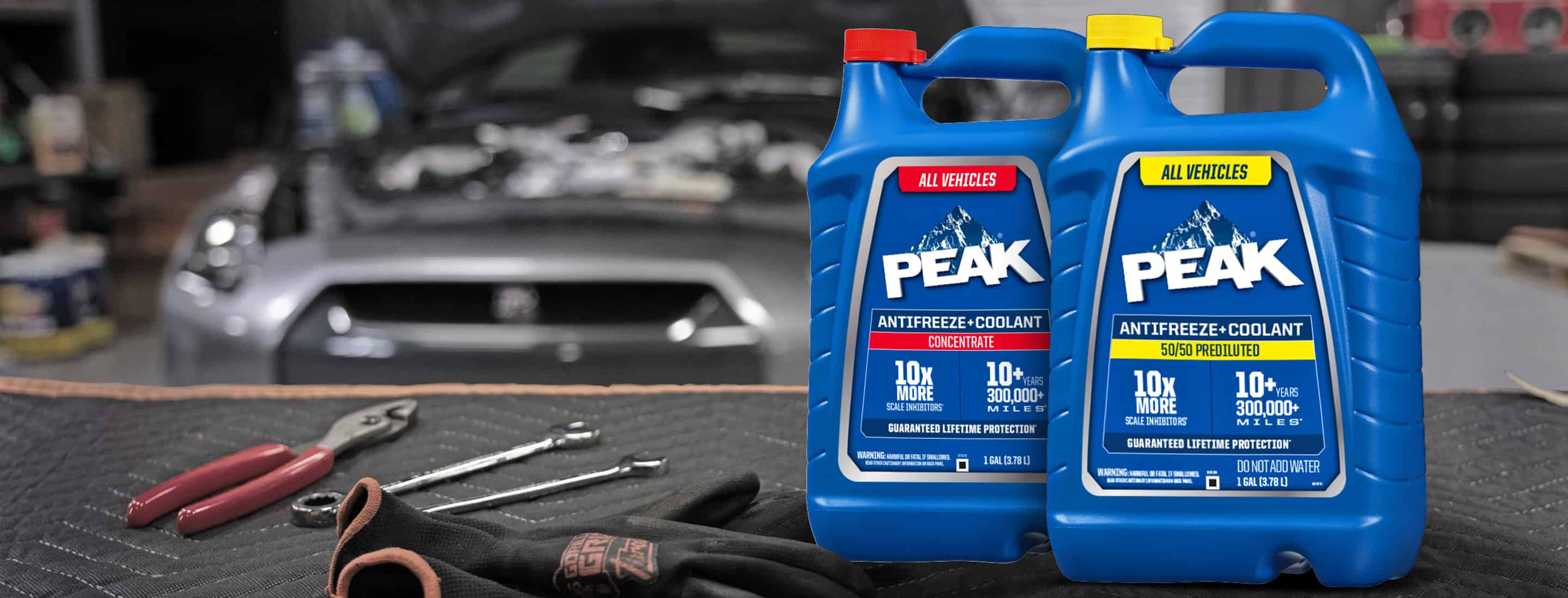 *10+ years/300,000 miles guarantee when a complete cooling system flush and fill is performed and proper cooling system maintenance is followed. Always follow vehicle owner’s manual for top-off requirements, change intervals and specified maintenance. See PEAKGuarantee.com for more details.