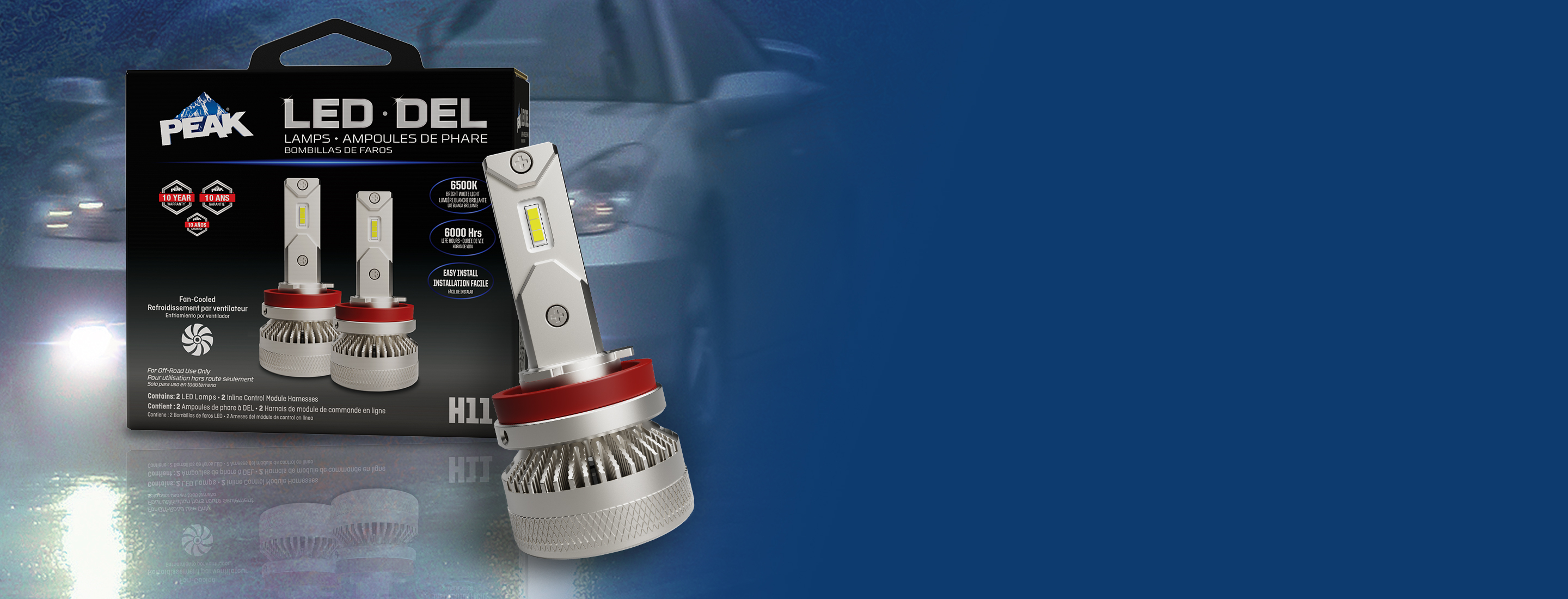 PEAK® LED Fog Lamps are designed to easily replace your factory fog lights*, giving you a powerful upgrade with up to 2,800 lumens of bright white light. Each set includes two lamps with built-in control modules that keeps the brightness steady and prevents the lamps from overheating.