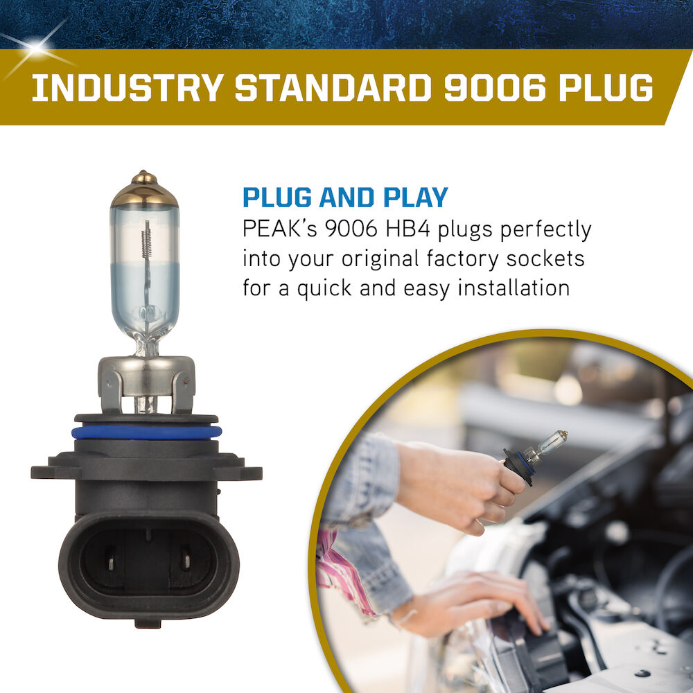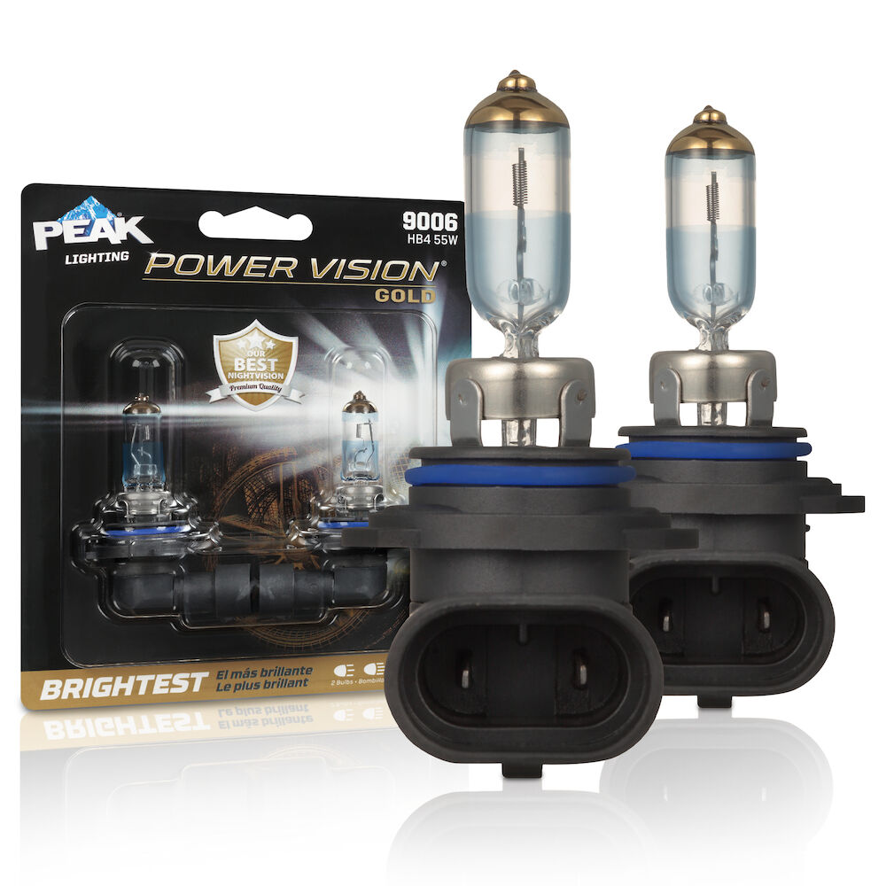 The PEAK Power Vision Gold Headlamps feature high-performance tungsten filaments and customized gas mixtures, combined with a proprietary optical coating. Safe driving at night is critical, and it starts with your headlights. The sooner you’re able to see an object on the road the quicker you can react. Make sure your headlights are performing correctly and be sure to replace them with a high-performance headlights for increased visibility.