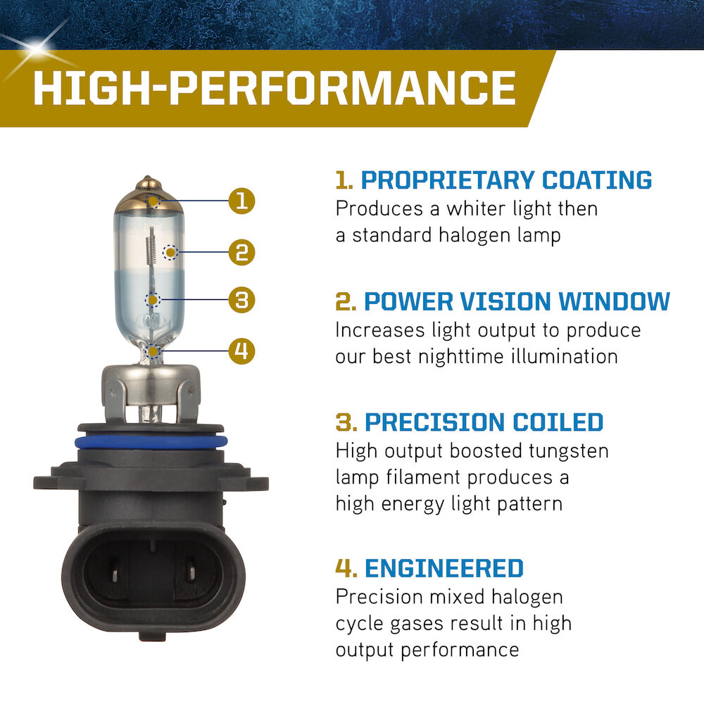 • ENGINEERED: Precision mixed halogen cycle gases result in high output headlamp performance