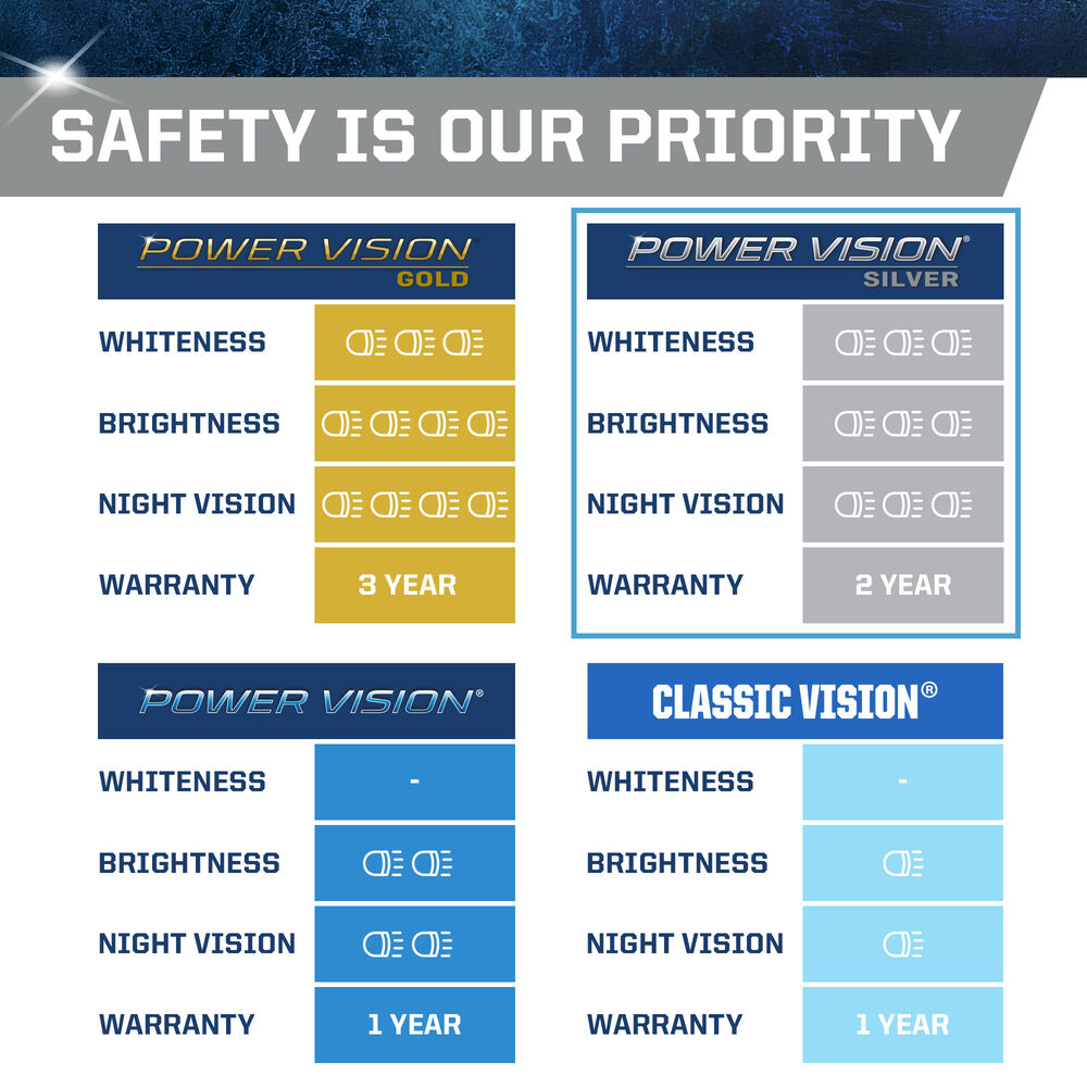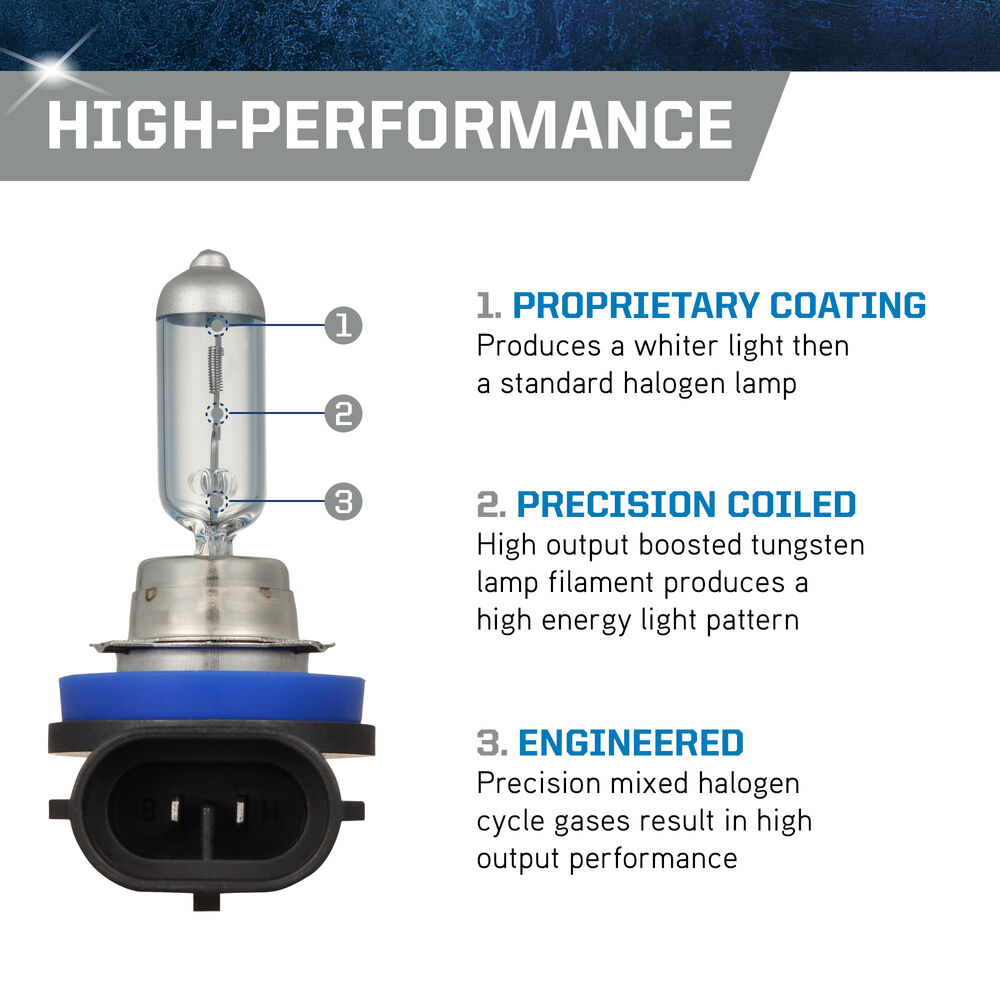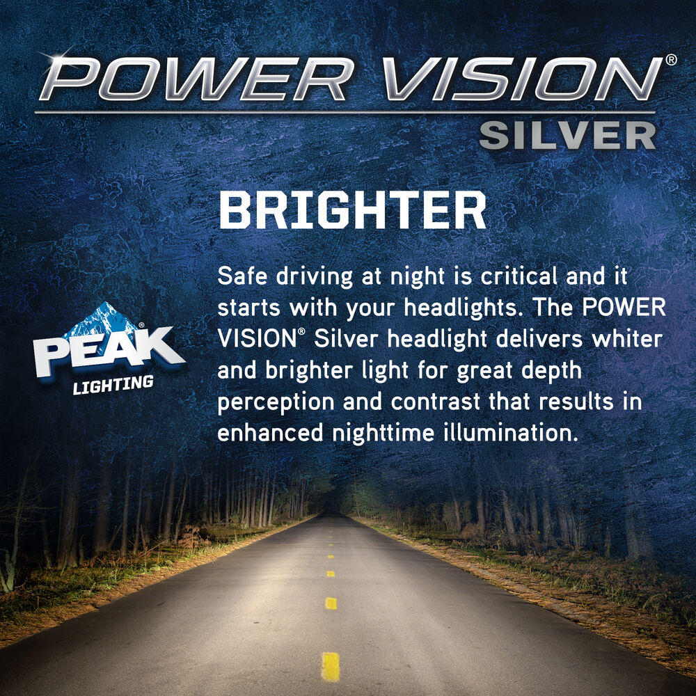 Upgrade your vehicle and make driving safer with the PEAK Power Vision Silver Automotive High Output Performance H11 55W Headlights. These tungsten filament headlights provide a direct fit replacement for your factory headlights and provide a brighter down road and side road vision for your vehicle than standard halogen headlamps. The lights' mixed halogen cycle gases and precision-coiled filament produce a high output that increases visibility while driving at night to help you drive safer. The proprietary coating on these lamps produces a whiter light than a standard lamp. These 55W headlights are compatible with all vehicles and headlamp configurations that accept H11 bulbs, providing an easy and direct fit for several cars, trucks, vans, and SUVs. The PEAK Power Vision Silver Automotive High Output Performance H11 55W Headlights are also available in Standard and Gold output levels. PEAK’s parent company, Old World Industries, is an independent, family-owned business that has been a leader in the development and distribution of high-quality automotive products for over four decades. The PEAK brand has always been a little different – and always about the customers that are passionate about life and their vehicles. Over four decades of American ingenuity in developing world-class products that meet or exceed industry performance and quality standards. PEAK exists to deliver peak performance, so our customers get more out of their vehicles…and more out of life.