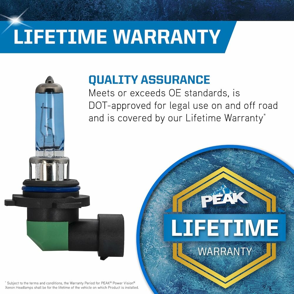 Brilliantly illuminate the road ahead of you with the PEAK XENON Headlight Set of Two. These highly-powerful sealed halogen lamps are designed to provide premium clarity on the road, offering maximum safety and visibility well into the night or in adverse weather conditions. With integrated 55-watt, 12.8-volt extreme white lights, this efficient headlamp light grants your vehicle a luxurious and stylish appeal on the road. This complete headlight is legal for on and off-road use, and is Department of Transportation (DOT) approved for quality assurance. Replace your headlights in pairs to ensure optimum performance and guaranteed visibility. To find the best replacement light for your vehicle, use the PEAK Vehicle Finder to confirm that this bulb is applicable to your car's make and model. PEAK's Line of Forward Lighting, Miniature Lamps, Sealed Beams, and Original Equipment headlamps were designed to meet or exceed the performance of your vehicle's original lamp.