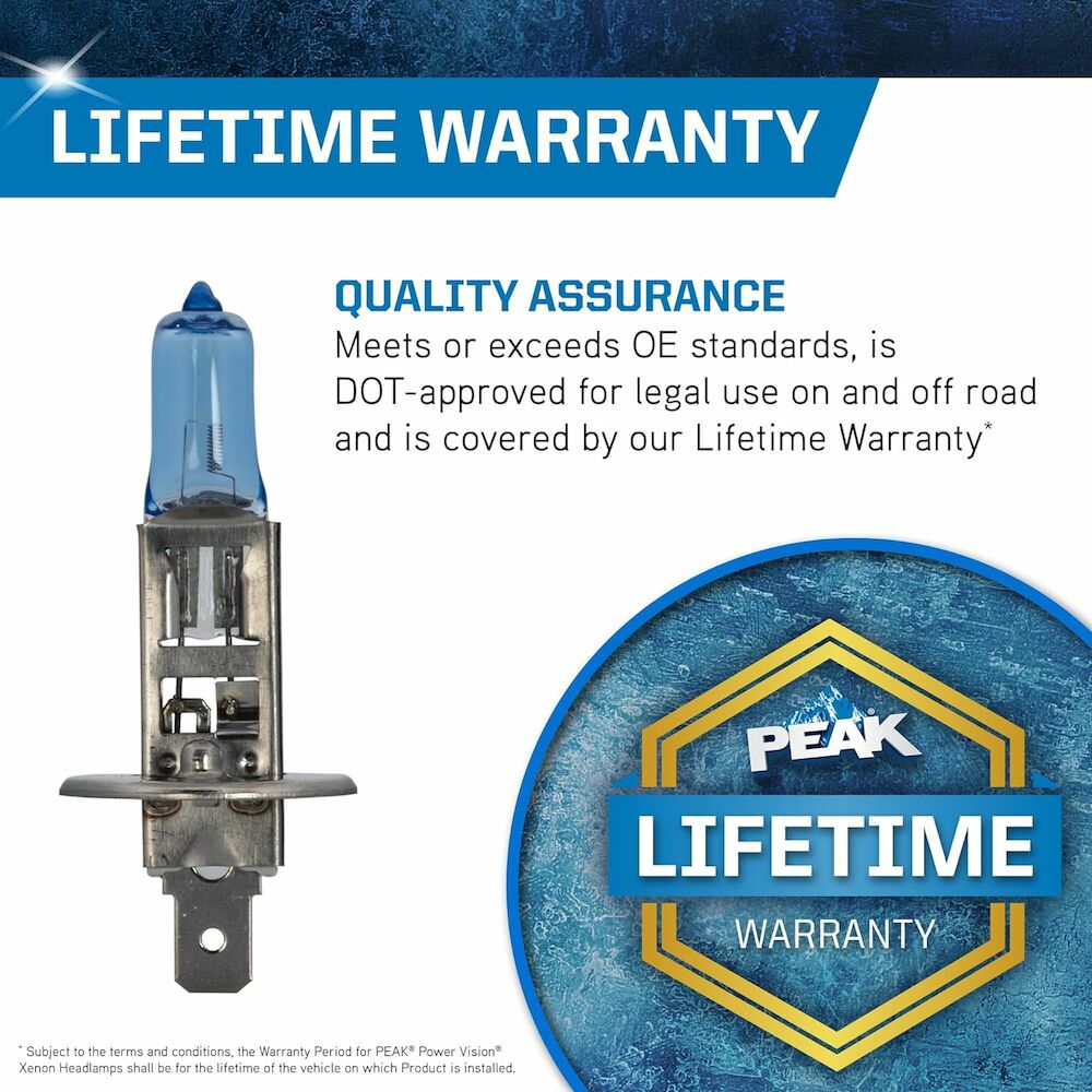 Brilliantly illuminate the road ahead of you with the PEAK XENON Headlight Set of Two. These highly-powerful sealed halogen lamps are designed to provide premium clarity on the road, offering maximum safety and visibility well into the night or in adverse weather conditions. With integrated 55-watt, 13.2-volt extreme white lights, this efficient headlamp light grants your vehicle a luxurious and stylish appeal on the road. This complete headlight is legal for on and off-road use, and is Department of Transportation (DOT) approved for quality assurance. Replace your headlights in pairs to ensure optimum performance and guaranteed visibility. To find the best replacement light for your vehicle, use Amazon Confirmed Fit to confirm that this bulb is applicable to your car's make and model. PEAK's Line of Forward Lighting, Miniature Lamps, Sealed Beams, and Original Equipment headlamps were designed to meet or exceed the performance of your vehicle's original lamp.