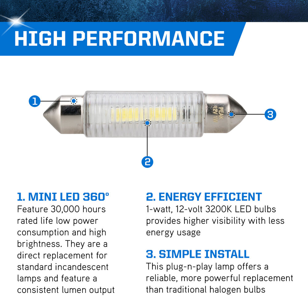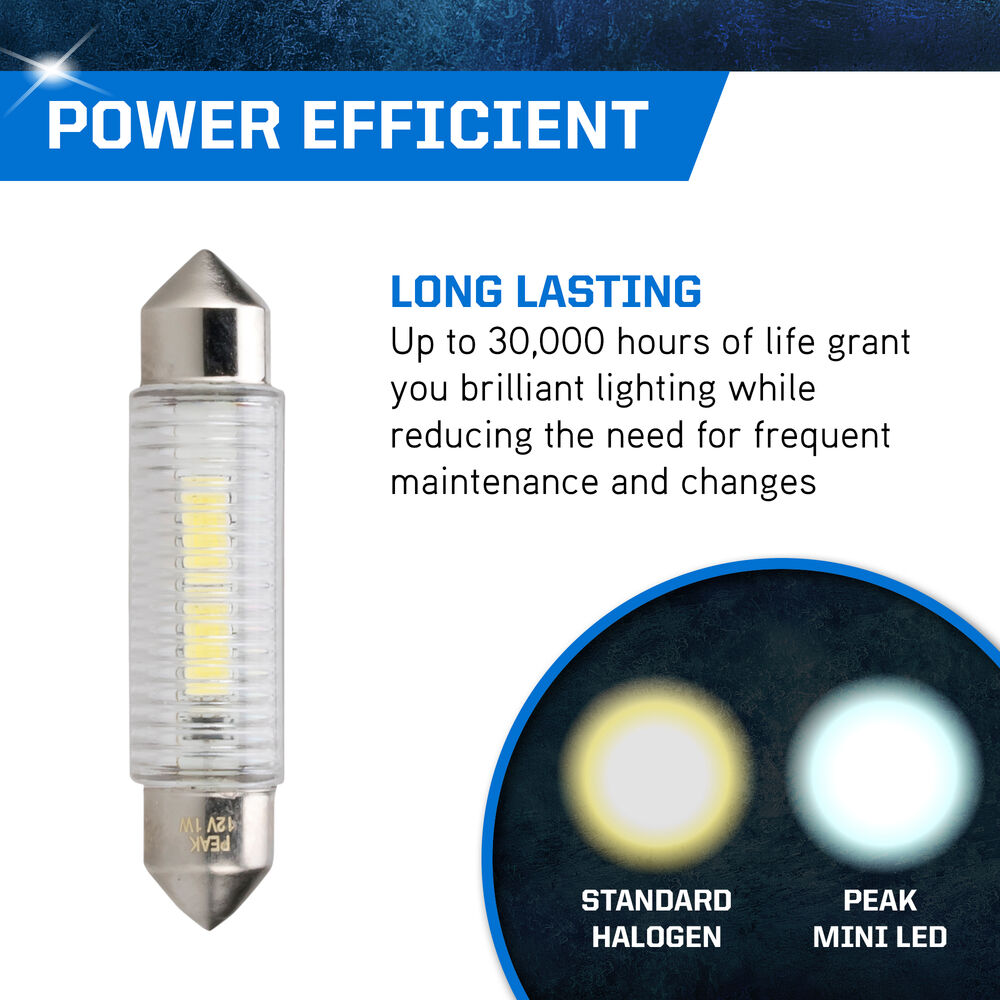 The LED Miniature bulbs feature 30,000 hours rated life low power consumption and high brightness. They are a direct replacement for standard incandescent lamps and feature a consistent lumen output.