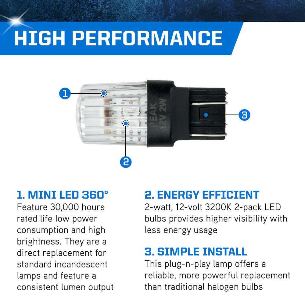 The LED Miniature bulbs feature 30,000 hours rated life low power consumption and high brightness. They are a direct replacement for standard incandescent lamps and feature a consistent lumen output.