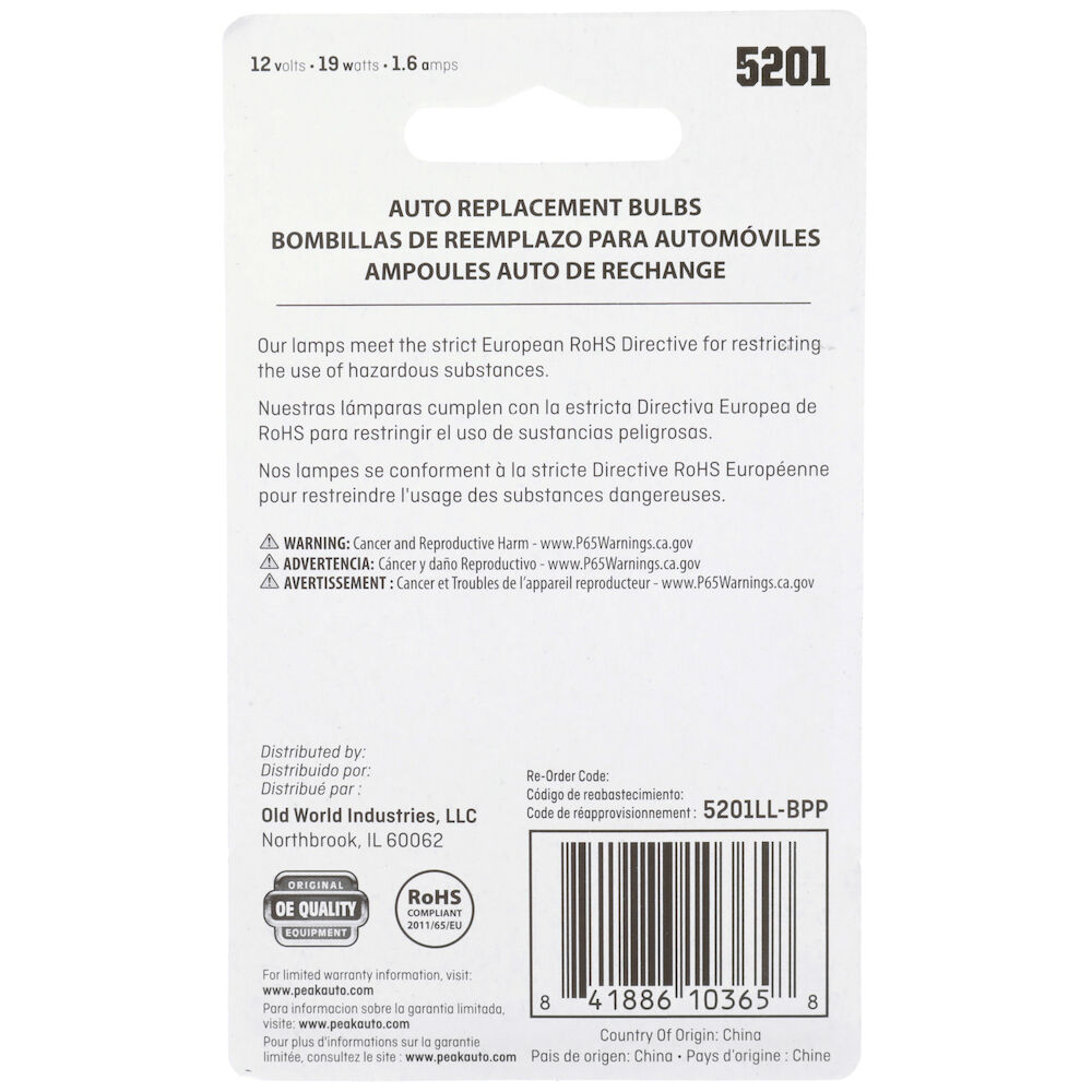 PEAK Halogen Bulbs Long Life Automotive Miniature 5201