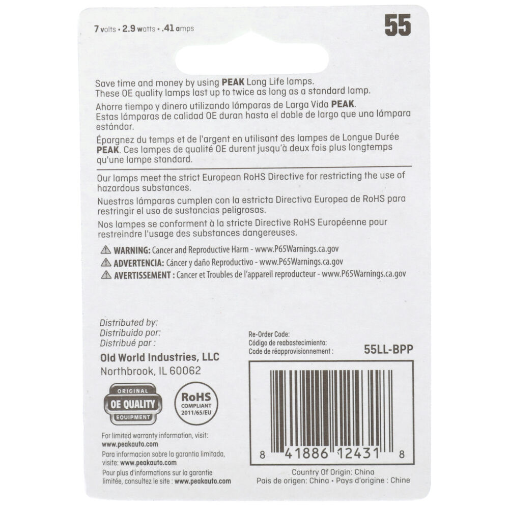 PEAK Miniature Long Life Automotive Miniature 55