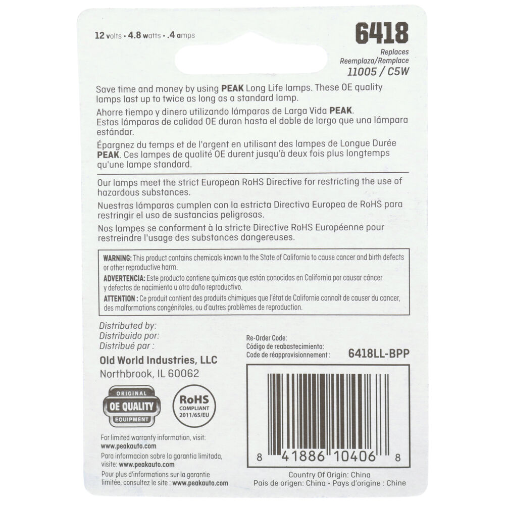PEAK's Line of Forward Lighting, Miniature lamps Sealed Beams, and Original Equipment headlamps were designed to meet or exceed the performance of your vehicle's original lamp.