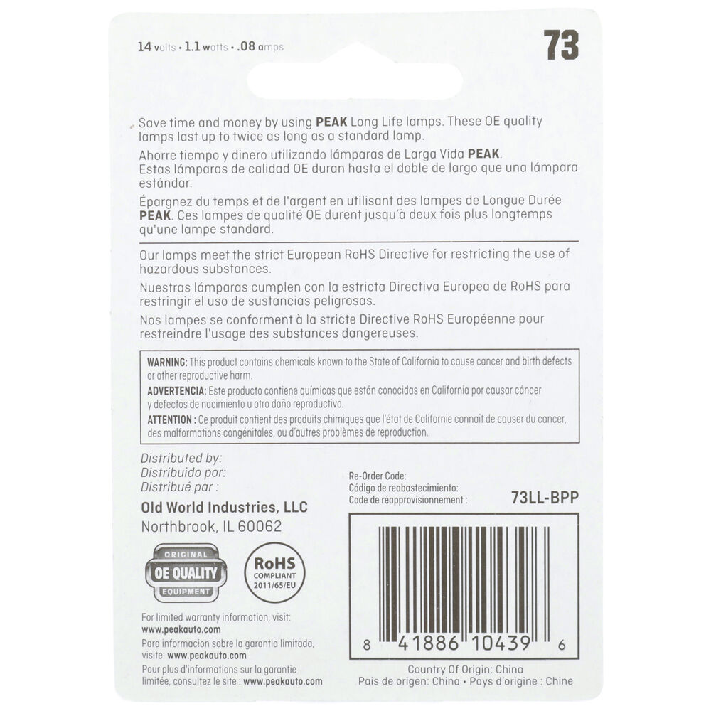 PEAK Long Life Automotive Miniature 73