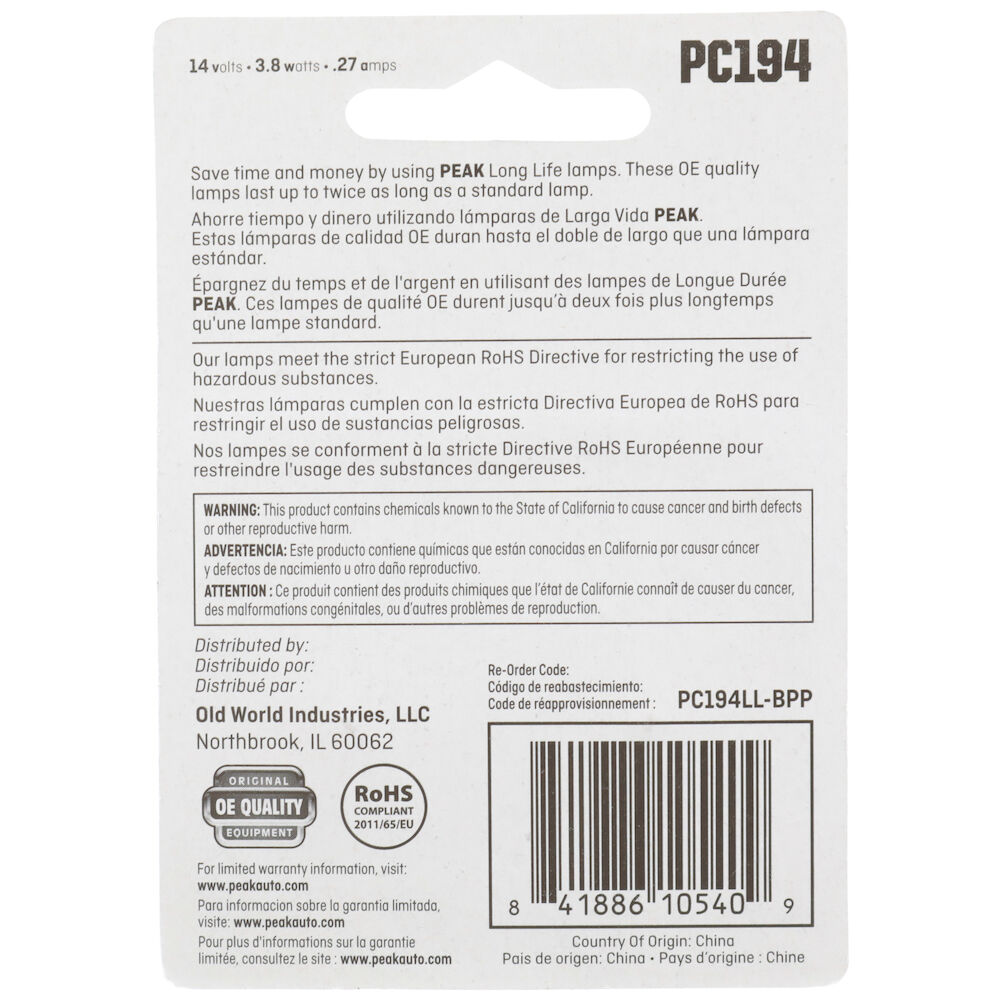 PEAK Long Life Automotive Miniature PC194