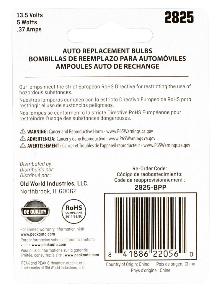 PEAK's interior and exterior bulbs are reliable, long-lasting OE Replacement Headelight. PEAK Halogen headlights produce light output that meets or exceeds OE specifications. Safe driving at night is important, and it starts with your headlights. The sooner you’re able to see an object on the road the quicker you can react. Make sure you’re headlights are performing properly and be sure to replace that with a high-performance headlight for increased visibility.