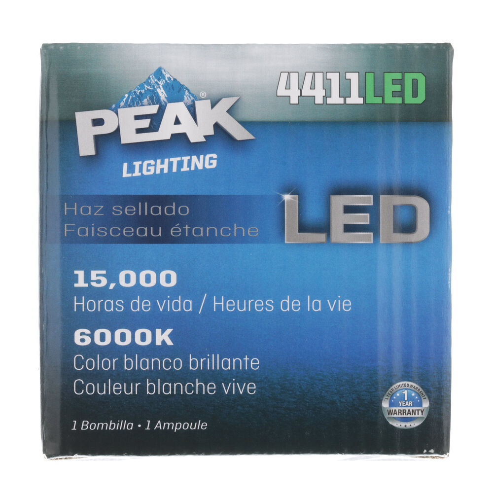 Give yourself the assurance and peace of mind that you need on the road with the PEAK Sealed Beam LED Headlight. This highly-powerful sealed LED lamp is a suitable replacement for standard halogen sealed beams, and grants more energy-efficient, brilliant light. This sealed-beam lamp replacement meets and even exceeds OE specifications. Thanks to the integrated 12/21.96-watt, 12-volt 6000K bright white LED light with consistent lumen output, you will be granted optimal visibility with less power consumption. In fact, this energy-efficient headlight beam provides up to 15000 hours of consistent life power, granting you a reliable automotive light beam while reducing the need for frequent maintenance and changes. This complete headlight is legal for on and off-road use, and is Department of Transportation (DOT) approved for quality assurance. Pair this LED headlight with another for your replacement to ensure the best performance and continued visibility.
