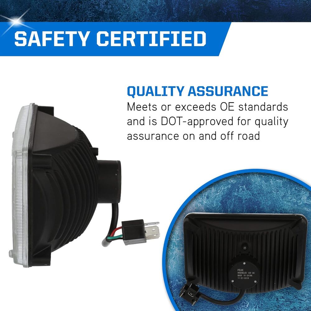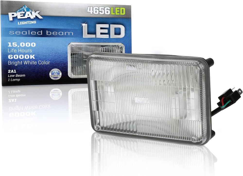Give yourself the assurance and peace of mind that you need on the road with the PEAK Sealed Beam LED Headlight. This highly-powerful sealed LED lamp is a suitable replacement for standard halogen sealed beams, and grants more energy-efficient, brilliant light. This sealed-beam lamp replacement meets and even exceeds OE specifications. Thanks to the integrated 5.64-watt, 12-volt 6000K bright white LED light with consistent lumen output, you will be granted optimal visibility with less power consumption. In fact, this energy-efficient headlight beam provides up to 15,000 hours of consistent life power, granting you a reliable automotive light beam while reducing the need for frequent maintenance and changes. This complete headlight is legal for on and off-road use, and is Department of Transportation (DOT) approved for quality assurance. Pair this LED headlight with another for your replacement to ensure the best performance and continued visibility.