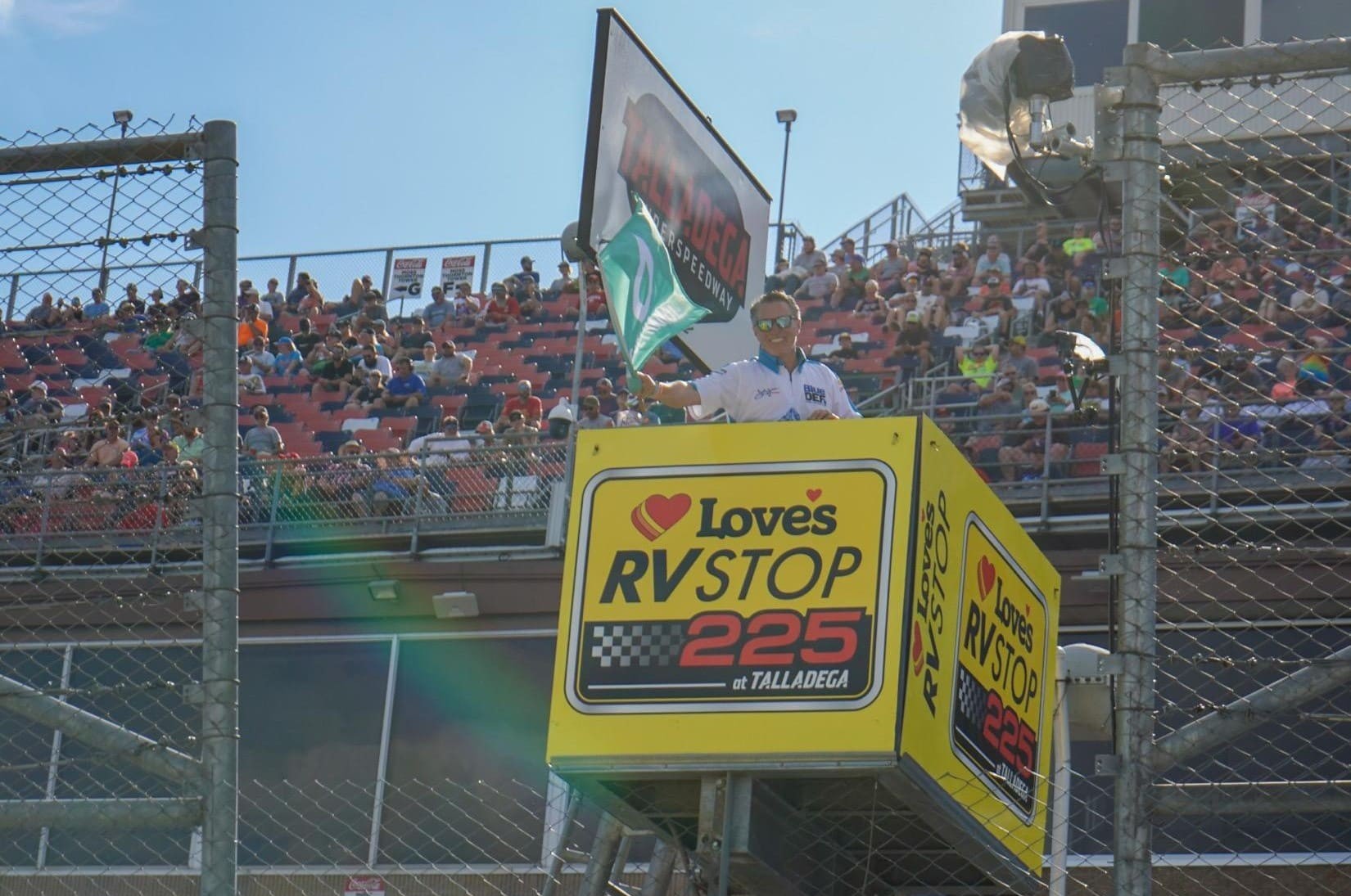 The 23rd of 25 races in the 2025 NASCAR CRAFTSMAN Truck Series took place at the Talladega Superspeedway this last Friday. The 90-lap race was kicked off by OWI's own Greg Noethlich, the honorary starter for the race, who waved the green flag and cheered on the PEAK/Love's #34 Truck, driven by Layne Riggs.